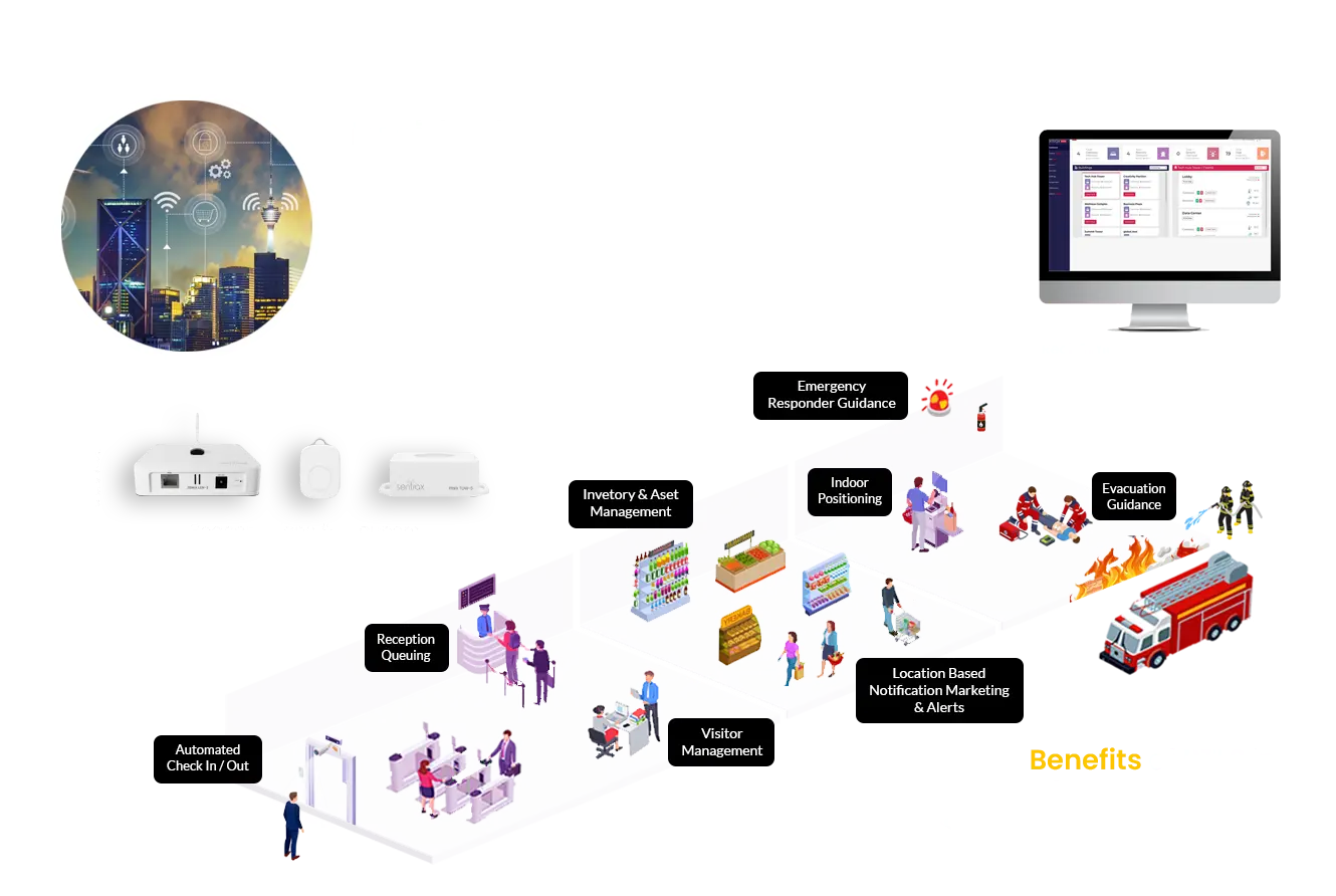 - Centralized RTLS platform delivering live visibility of people, assets, and environments.