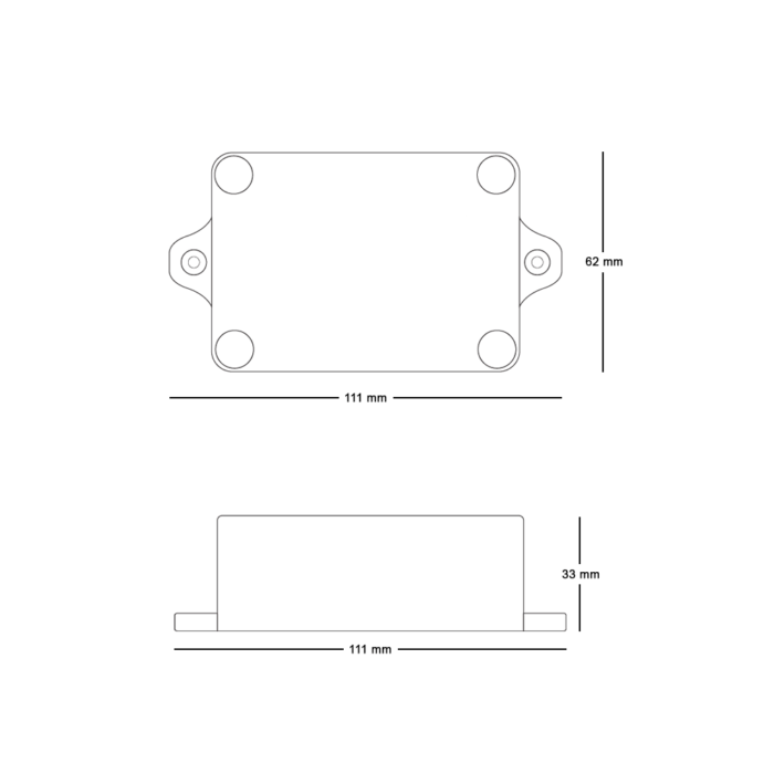 111mm (L) x 62mm (W) x 33mm (H) (with flanges)