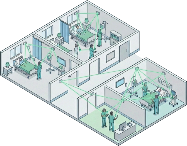 Sentrax provides an RTLS ecosystem that transforms raw location and sensor data into intelligent operational workflows. Built on a flexible architecture, it supports BLE RSSI, BLE AoA, and hybrid positioning methods to ensure the right level of indoor location accuracy depending on your applications.